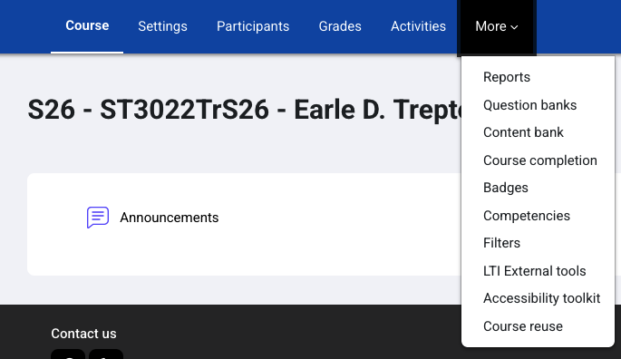 The course page will load, you can click on More, which will drop down and you can select course reuse.