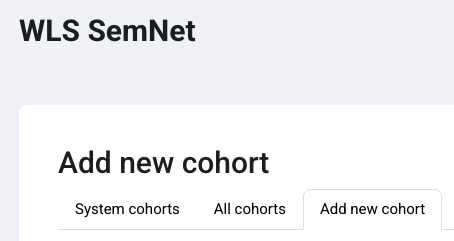 From the Add new cohort menu, add the 'Name' and the 'Cohort ID' (Usually year they graduate). Add a description, if needed. Click save.